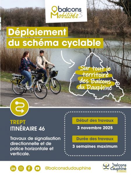 Pour information : Déploiement du schéma cyclable sur tout le territoire des Balcons du Dauphiné